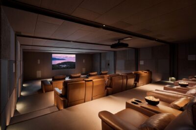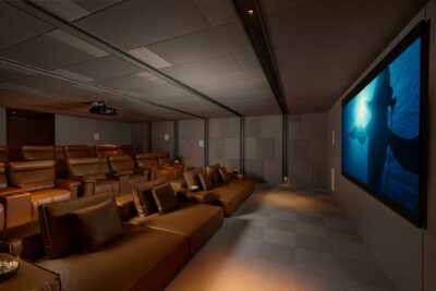 - Cinema with 140″ projector screen