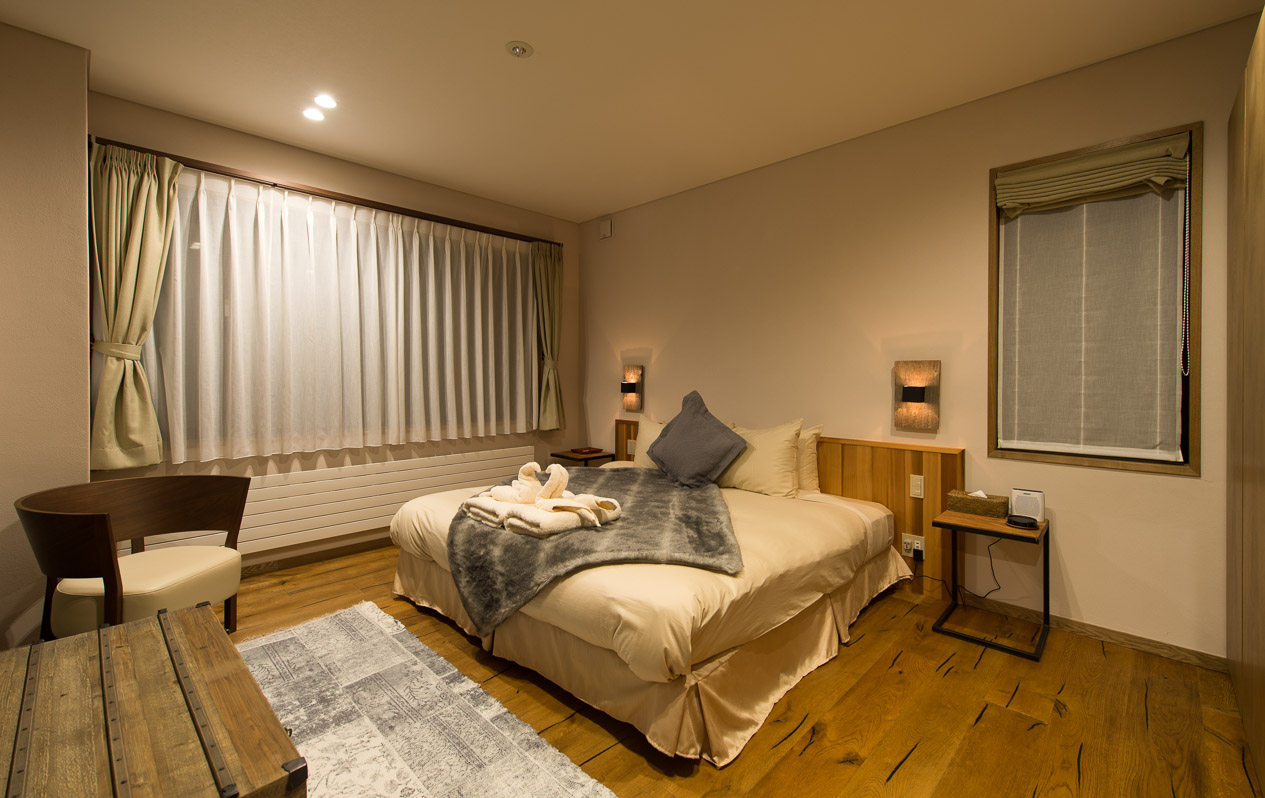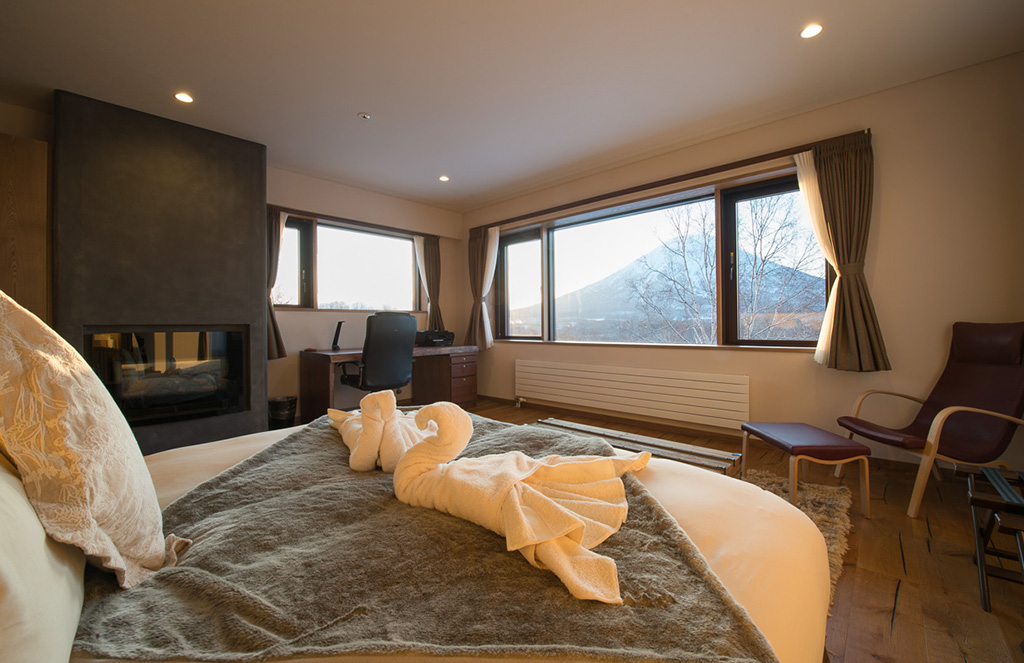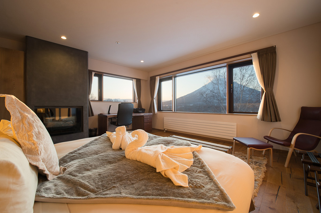King size bed or 2 single beds; Mount Yotei view; Closet; Safety box; BOSE sound system; Mobile phone; Central heating; Ensuite bathroom with bathtub & shower, vanity and Japanese toilet; Magnifying mirror; Scale; Toiletries; Hairdryer; Bathrobes; Slippers
