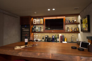- ManCave bar with championship shuffleboard table and outdoor smoking patio