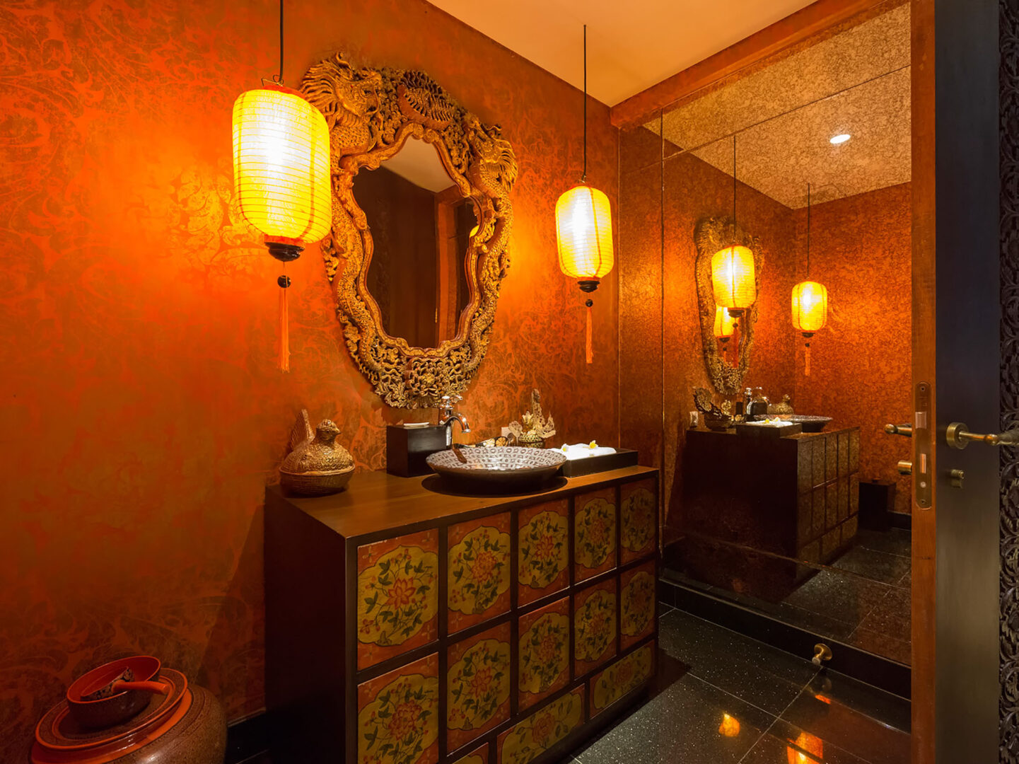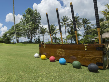 An Asian spa inspires deep-seated well-being, while the souk-style cinema has an air of cozy, decadent opulence with its soft ottoman beds and velvet curtains. Meanwhile, the fully equipped gym, tennis court, lawn croquet, and wading pool for kids, with a wading pool for kids too, inject some energy and activity to balance the deep sense of relaxation Villa Kaba Kaba induces.