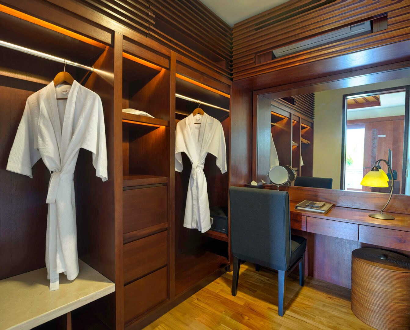 Juntal Delod (Guest Bedroom 2) — King or 2 Single beds; Balcony; 40-inch flat screen TV with Transvisions cable; DVD player; SONY sound system; Intercom; Walk-in closet; Safety box; Makeup table; Air conditioning; Ceiling fan; Ensuite bathroom with Bathtub & shower, Rain shower & shower, Vanity, and Toilet; Toiletries; Hairdryer; Slippers; Bathrobes; Umbrellas