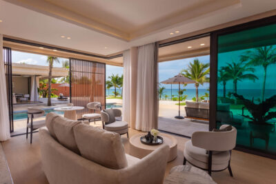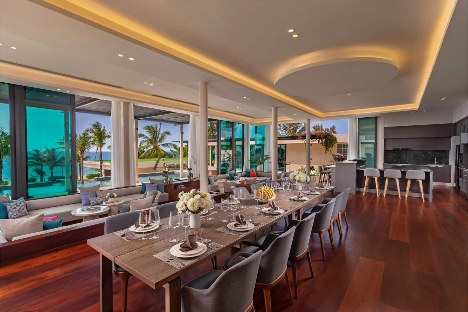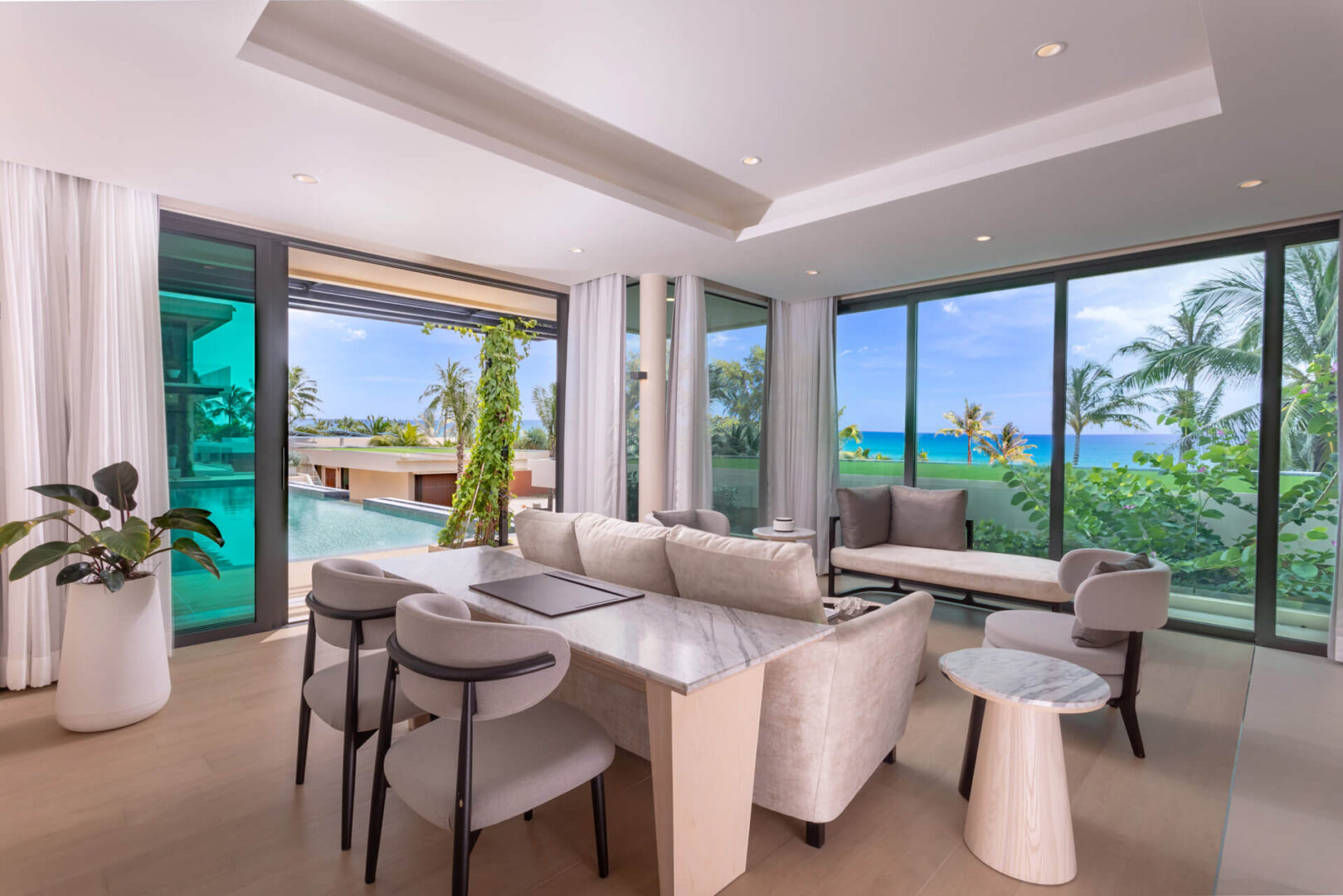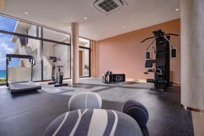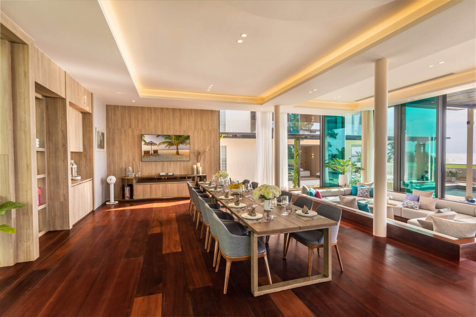 Awaiting guests indoors is a spacious living, dining, and kitchen area with panoramic ocean views—the perfect location to gather and mingle. The villa also features a dedicated games room with a foosball, a snooker/pool and ping-pong table, and a spa room with a splendid jacuzzi, steam room, and sauna. Additionally, the villa is also equipped with a well-fitted gym for fitness needs and provides a convenient space for maintaining a healthy lifestyle during their stay.