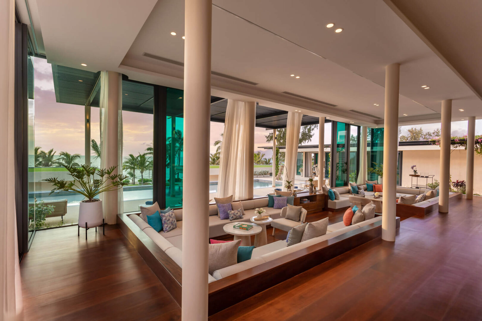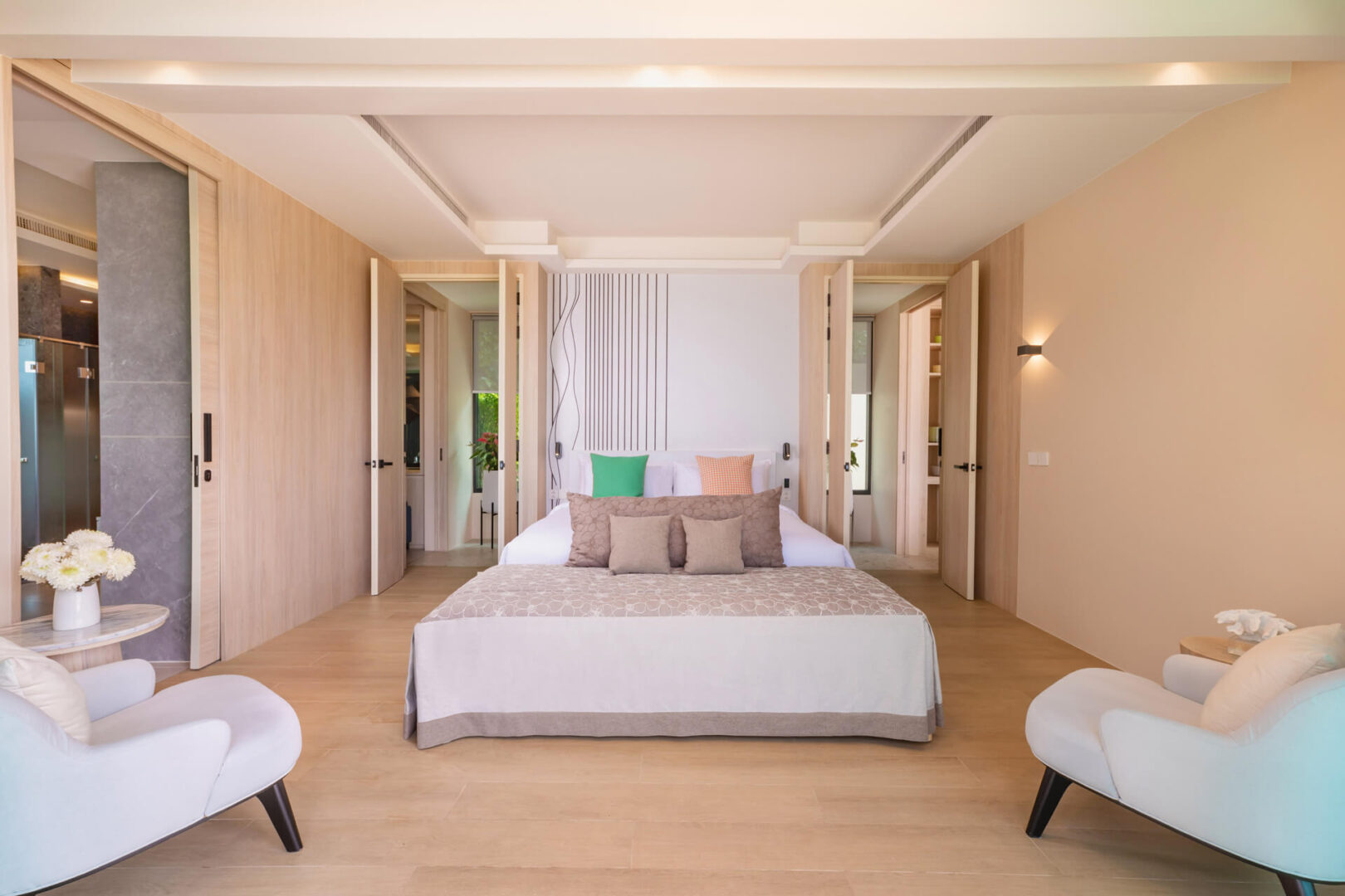 Villa Boonta boasts six bedrooms, each furnished with king-size beds and grand ensuite bathrooms. All bedrooms also feature warm living spaces with cozy seating and dedicated work desks. Two of the bedrooms are bungalow-type and have pool and sea-view terraces with additional seating.