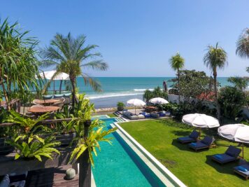 After tiring days or buzzing nights, the staff will be ready to help guests unwind in the private full menu spa complete with a treatment room and its plunge pool, just a short walk away from the 27 meters swimming pool and its chill-out area. The beautiful view of the cliffs of Jimbaran Bay can be enjoyed from two raised oceanfront decks.