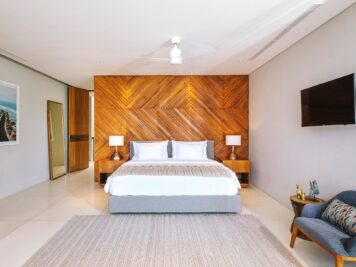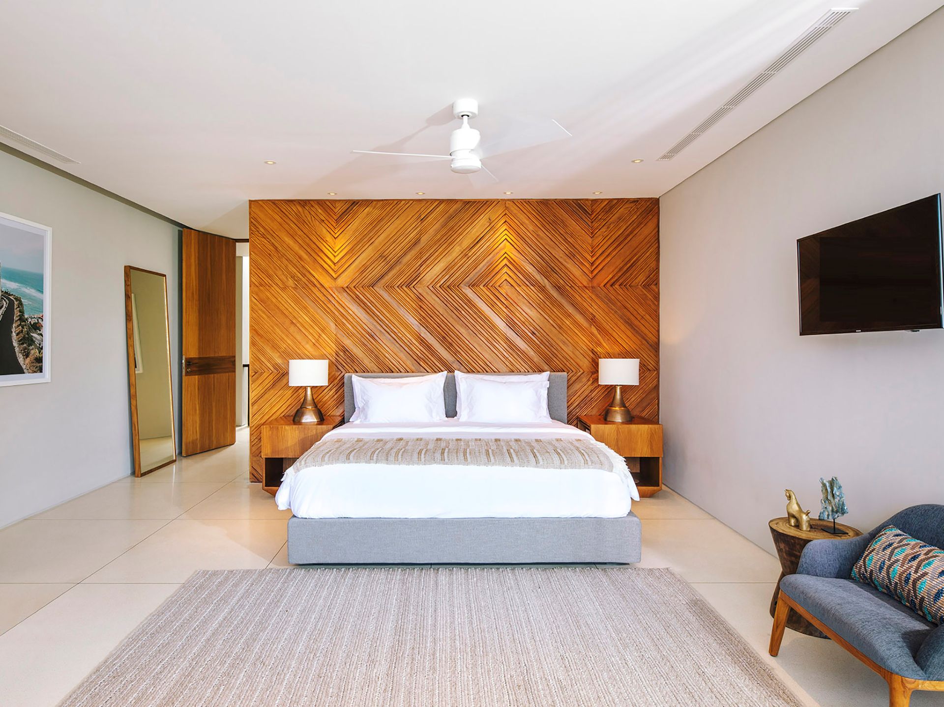 The villa has six bedrooms including a master bedroom. Three of them have an oceanfront view. Different locations and settings will let guests find the perfect accommodation for family or friends, having multiple choices of ambiance, terraces, private bathrooms and of course TV and DVD players in every bedroom.